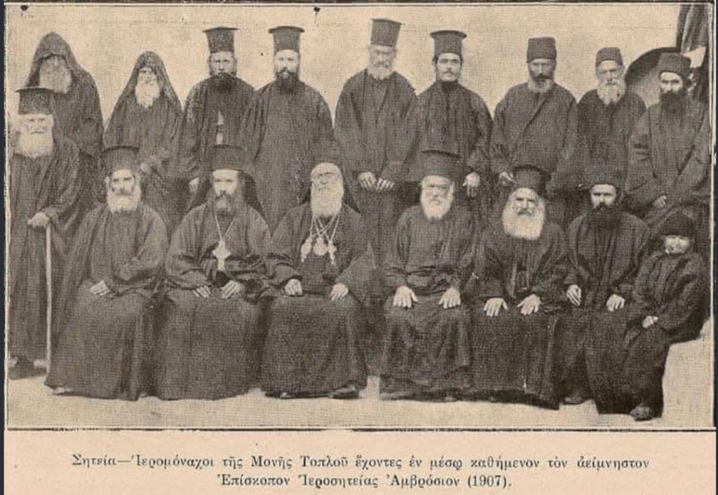 Ο Επίσκοπος Ιεράς και Σητείας Αμβρόσιος κατά την πανήγυρη της Μονής Τοπλού το έτος 1924