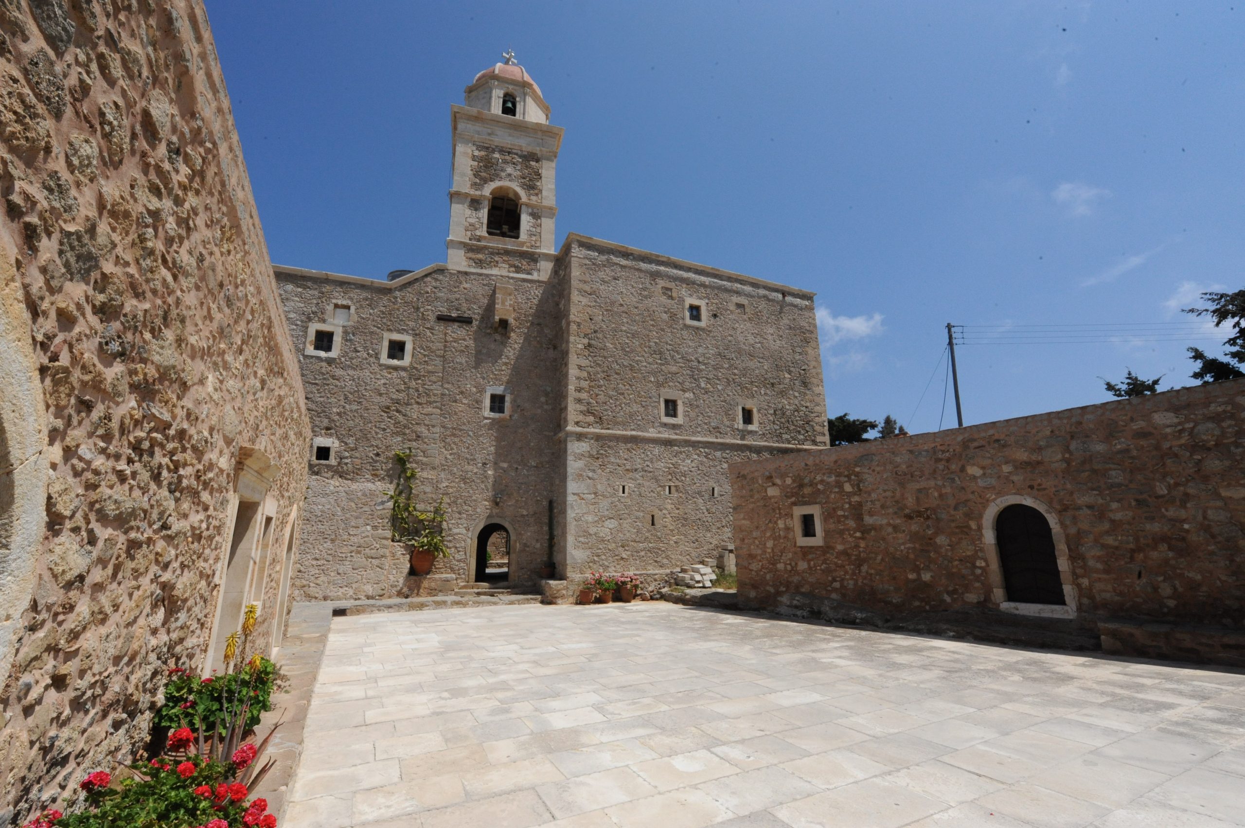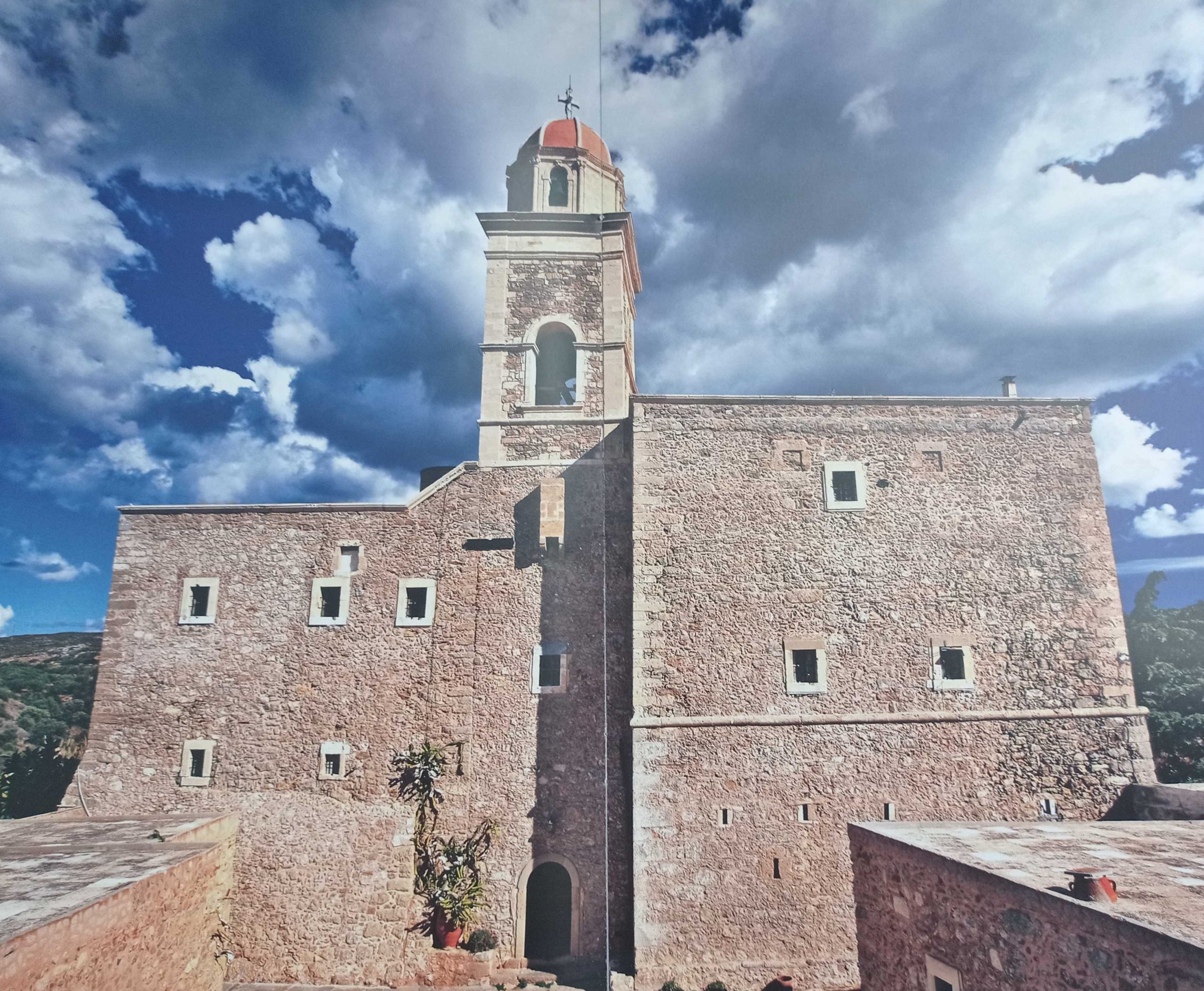 Η ανοικοδόμηση της Μονής σε φρουριακή μορφή συνδέθηκε με τις βενετοκρητικές οικογένειες των Κορνάρων (Cornari) και των Μέτζων (Mezzi) της Σητείας, γι᾽αυτό ακόμα και σήμερα η νότια πτέρυγα φέρει το όνομα των Κορνάρων και η βόρεια των Μέτζων, ονομασίες που μαρτυρούν τούς χορηγούς και προστάτες της Μονής.